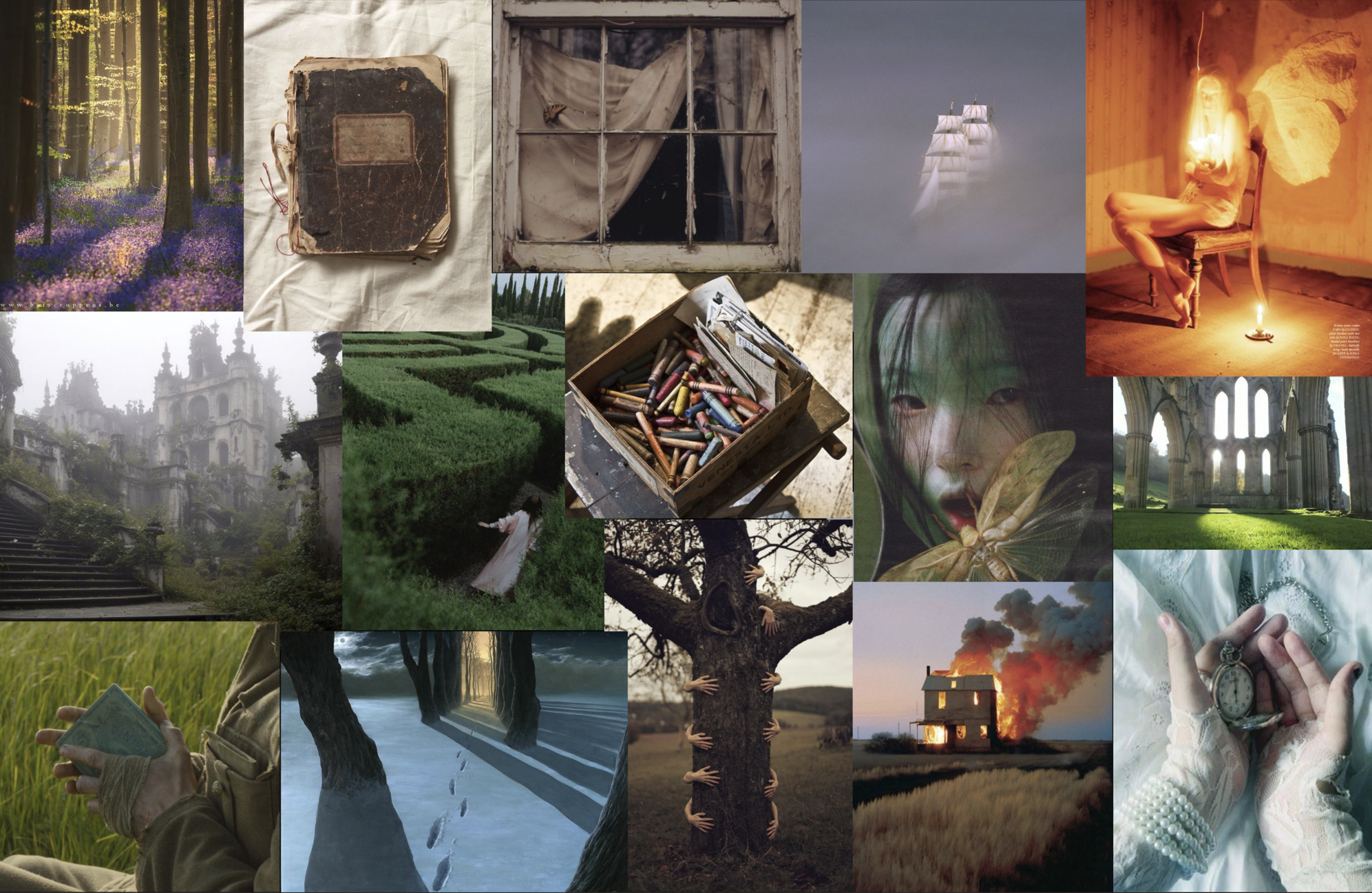 When making Mood Boards, I try to envision a world in which these garments belong to. Here, the world is whimsical and surreal. A reflection of what we see every day, but with elements that make it feel like a dream. Blurring the lines between reality and imaginary.